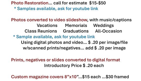● Quality prints from your photos, negatives, or slides to preserve your heritage.